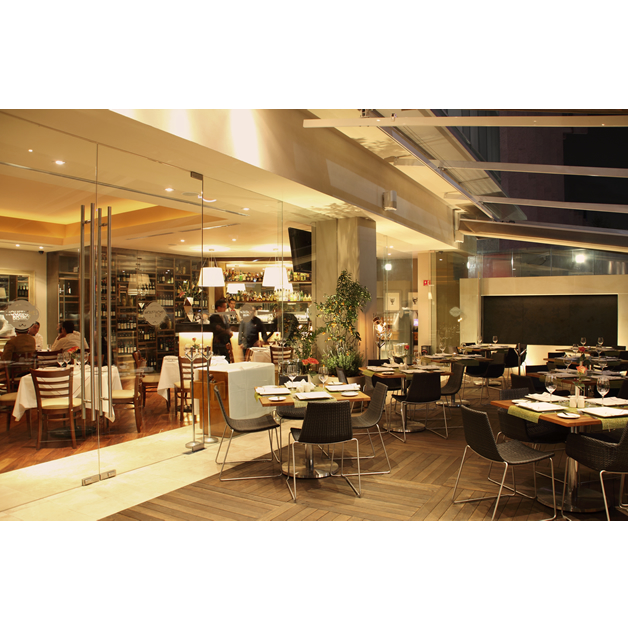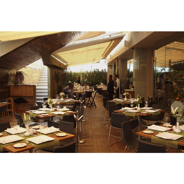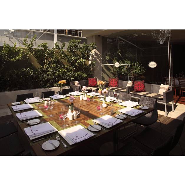 La acogida alegría y elegancia de Paris se vive en este lugar, donde se adapto una confortable terraza con una espectacular fuente, permitiendo así a los cinco sentidos fusionarse en este lugar: gusto, vista, tacto, oído y olfato.