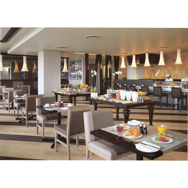 Considerando el aspecto de una África espaciosa y con figuras geométricas a pesar de que el espacio era pequeño, se busco ambientarlo jugando con la perspectivas que dan las líneas y ángulos logrando que el recinto se sienta espacioso, muy relajante y al mismo tiempo elegante.